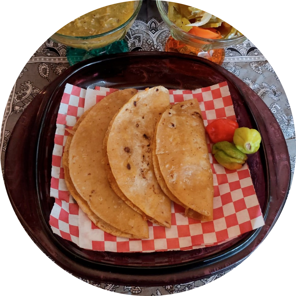 La oferta es clásica pero contundente: frijoles, papa, chicharrón y adobo. Cada taco es una explosión de sabores que ha sido perfeccionada a lo largo de tres décadas. La masa de las tortillas es suave y fresca. El relleno de frijoles es cremoso y bien sazonado, mientras que la papa está cocida al punto exacto, con un toque de especias que la hacen única. El chicharrón es jugoso y el adobo, un equilibrio perfecto entre picante y sabroso.